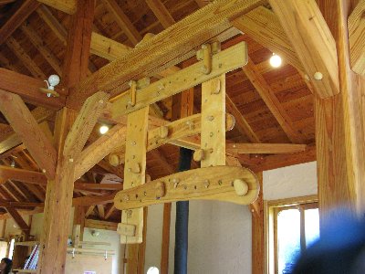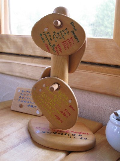 木工家具やおもちゃ・雑貨が売られてもいます。店内もいろんな仕掛けがあって、頭の上も面白い。テーブル・椅子・窓の鍵も手作りで統一された雰囲気です。