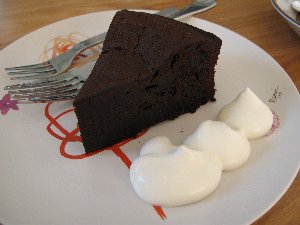 息子達はいつもここに来る途中寝てしまい、私達は珈琲を頂きながら窓越しにチラリチラリと車の中ですやすや寝ている彼らをチェックします。今回は眠りがものすごく深かったらしく、ケーキを食べてもいいくらいの時間があったのでガトーショコラを注文です。