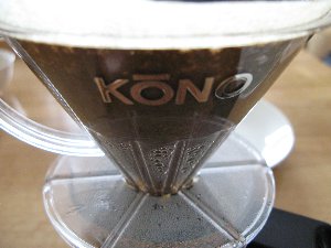 徳光珈琲に行った時、カウンター越しに眺めていた珈琲の淹れ方。ドリッパーの違いに気づきました。我が家はカリタ。徳光珈琲はKONO。おいしい珈琲を淹れてくれる喫茶店と同じ道具を使うとうまく淹れられそうな気がします。お値段も珈琲一杯くらいでしたので、お買い上げです。