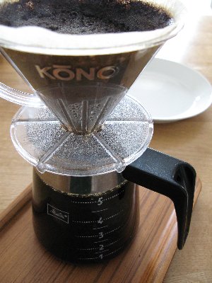 お店に入った時にはテーブルが満席で「飲めないのは残念」と思っていたら、カウンターに座らせてもらえました。ある意味カウンターは贅沢な場所。二人でご夫婦の珈琲の入れ方を凝視していたのでした。時折、質問してみたりして・・・でも、いつ「企業秘密です」と言われるんじゃないかと内心ヒヤヒヤ。